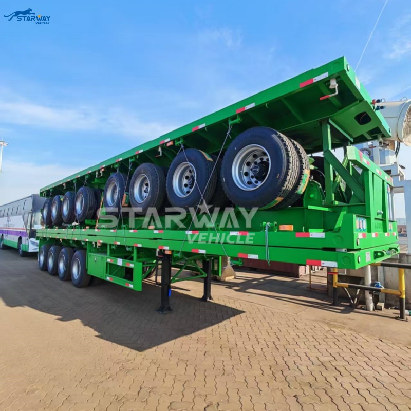 The 4axles 12.5m flatbed trailer, it uses a full through-beam structure with a welded I-beam main frame, so it's incredibly strong and